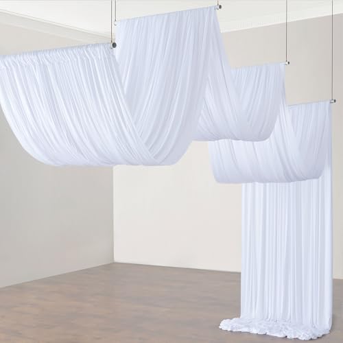 • 【Versatile Beautiful White Drapery】- Lovely drapery looked fabulous for decorating your weddings ceiling, stages, receptions, parties, bridal and baby showers,birthdays,engagement,candy buffets,dessert tables, photography studio, ceremony and more, white ceiling drapes for weddings will create a delicate and aesthetic sense to your wedding ceiling decoration and light up every banquet.