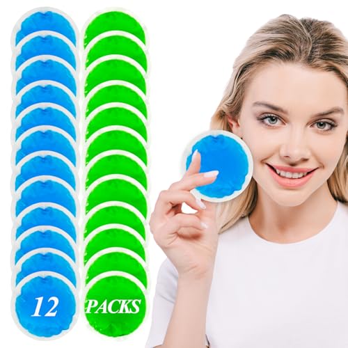 12 Pack Ice Pack for Injuries Reusable,Hot & Cold Gel Ice Pack for Face,Eyes,Teeth,Foot,Headache,Allergies,Shoulder Pain Relief,Warm & Cold Compress for Boo Boos,Students(6Blue+6Green)
