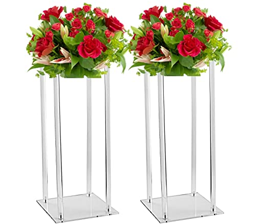 2 Pcs Acrylic Clear Vases for Wedding Centerpieces, 23.62in Tall Flower Vases, Engagement Home Party Table Decor Centerpiece Vases, Rectangular Acrylic Flower Stand with 10 Pcs Gold Napkin Rings