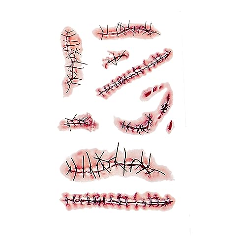 20 Sheets Halloween Zombie Temporary Tattoos – NEDEQI Chucky Scar Fake Blood Tattoos Waterproof Realistic Stitches Wound Temp Tattoo for Chucky Cosume Prank Makeup Cosplay Kids Men Women Adults