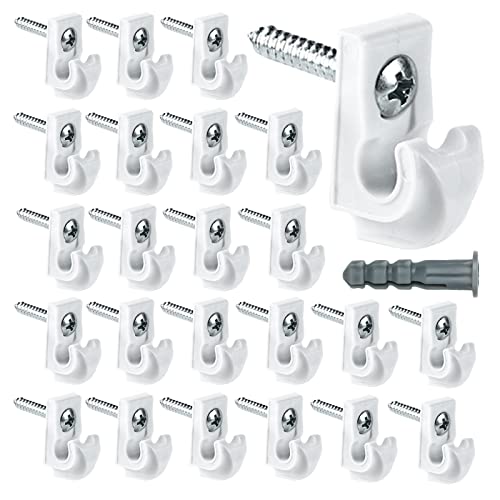 24 Pack White Down Wall Clip Closet Shelves Clips Wire Shelf Loop Clips Plastic Heavy Duty Wire Shelf Brackets Included Clips Screws and Expansion Tubes for Wire Closet Shelving
