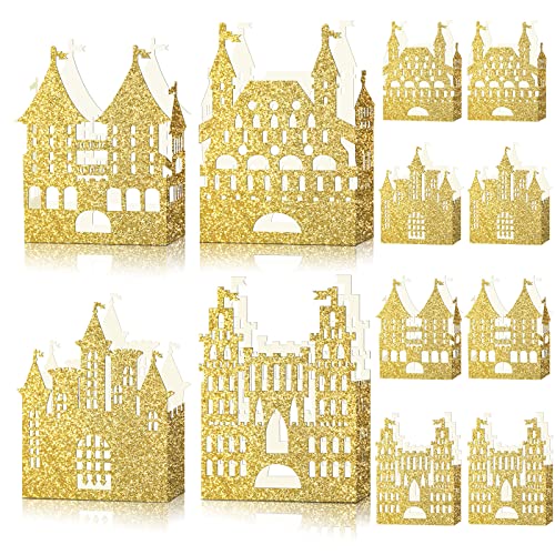 24 Pieces Gold Princess Castle Box Princess Birthday Party Decorations Gold Castle Table Centerpiece Glitter Princess Theme Party Supplies for Princess Birthday Baby Shower Party Favor Decorations