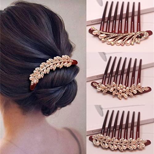 3 Pcs Pearls French Twist Hair Comb, Hair Side Comb Womens Hair Accessories, Girls Rhinestones Flower Hair Combs Wedding Headpieces Hair Holder Comb Tools Hair Accessory for Women Girls Wedding Daily Gift