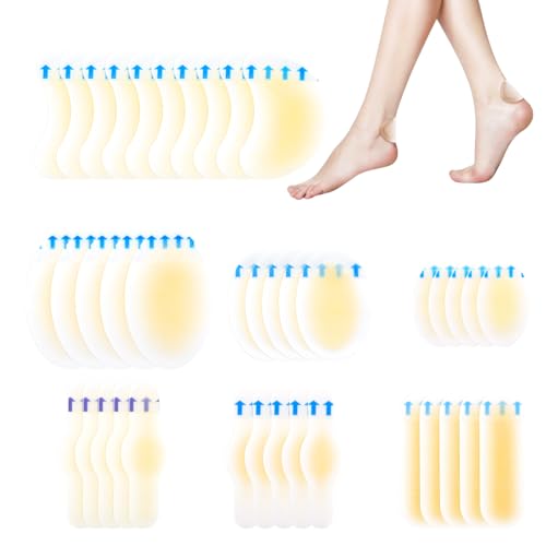 40 PCS Gel Blister Bandages for Feet – Hydrocolloid Bandages for The Toes, Fingers, 7 Shapes of Water Resistant Blister Bandages for Prevention & Recovery