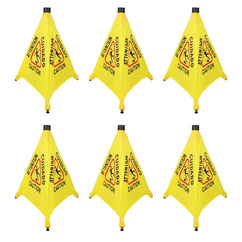 6 Pcs 20 inch Pop up Wet Floor Sign with Storage Tube, Wet Safety Signs Commercial Caution Safety Cone Pop up Caution Sign for Commercial Stores Grocery Restaurant Restroom Office