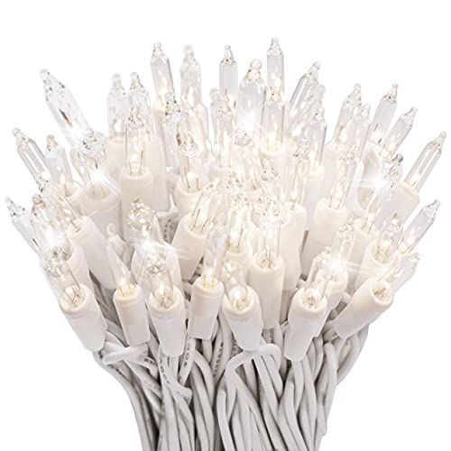 612 Vermont 100 Clear Christmas Twinkle Lights on White Wire, 12 of 100 Lights Twinkle, Indoor and Outdoor Use, Connect up to 4 Sets End to End, Lighted Length 20.6’, Total Length 21.8’
