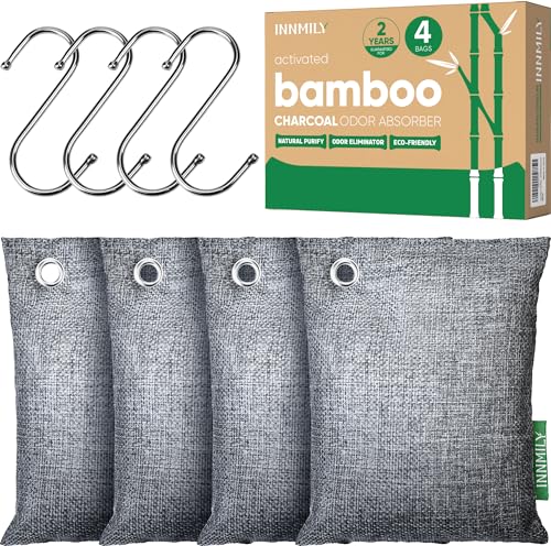 Activated Charcoal Odor Absorber,Large 4x200g w Hooks Nature Odor Eliminator for Strong Odor,Bamboo Charcoal Air Purifying Bags,Moisture Absorbers for Fresh Home Car Closet Pet,Smoke Smell Deodorizer