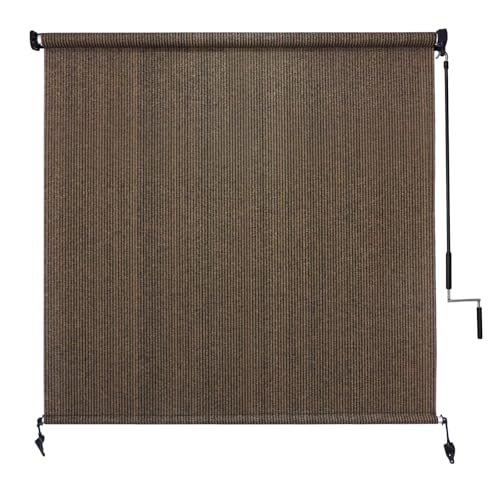 Amagenix Outdoor Roller Shades 6′(W) X 6′(H), Exterior Cordless Patio Shades Roll Up Outdoor Blinds with 90% UV Protection, Two-Section Poles with One-Piece Fabric, Mocha