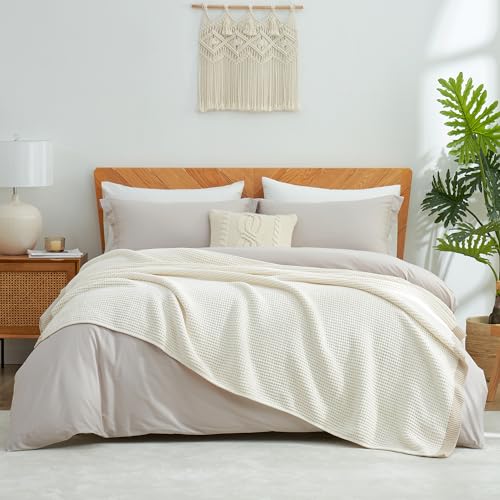 Amélie Home Waffle Throw Blanket for Couch Twin, Soft Cozy Chenille Knit Blanket Warm Decorative Throw for Sofa, Bed, Living Room, 60″x80″, Ivory