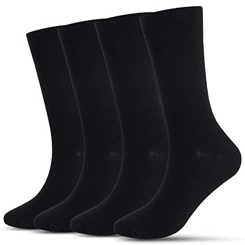 Athlemo Men’s Dress Socks 4 Pack Crew Business Casual Sock Moisture Wicking Super Soft (Sock size 9-11, Black(4 Pairs))