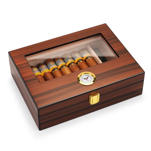 Bald Eagle Cigar Humidor Box, Glass Top Cedar Case with Humidifier Hygrometer, Handmade Desktop Box Holds 15-20 Cigars