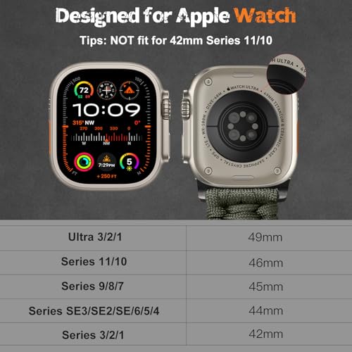 - 【Compatibility & Sizes】Bandletic paracord watch band is compatible with Apple watch Ultra 3/2 Band for iWatch series 11,10, 9, 8, 7, 6, 5, 4, 3, 2, 1 and SE3/SE2/SE for iWatch sizes 49mm, 46mm, 45mm, 44mm, and 42mm (for Series 3, 2, 1). It does not fit for iWatch Series 11/10 42mm. Size M is fit for 5.9"- 6.7"(150 -170mm), Size L for 6.7"- 7.7"(170 -195mm), (Note: Watch Not Included)