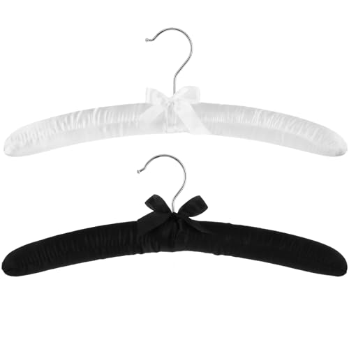 Beeveer 2 Pack 15 Inch Satin Padded Hangers – Bride Groom Hanger Wedding Dress Suit Hanger White and Black No Shoulder Bump Hangers