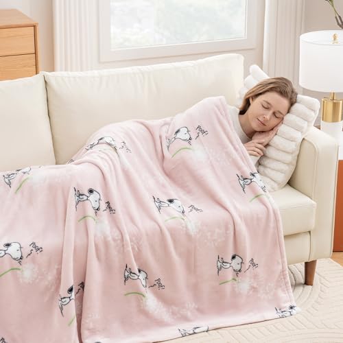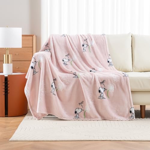 Berkshire Blanket Peanuts VelvetLoft Cute Character Snoopy Plush Throw Blanket,Peanuts Snoopy Make A Wish Spring Pink,Throw 55 in x 70 in (Official Peanuts Product)
