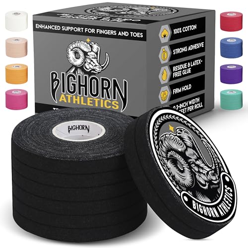 Bighorn Athletics Jiu Jitsu Finger Tape | Residue-Free Athletic Finger Tape for Sports & Injuries: Rock Climbing, Volleyball, Football, Basketball, Hands & Toes | 0.3-Inch x 45-feet, 8-Rolls, Black