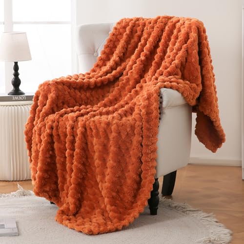 Bnuitland Burnt Orange Super Soft Flannel Throw Blanket, 3D Clouds Stylish Jacquard Lightweight Blanket for Bed,Sofa,Couch,Home Decor, 300 GSM Fleece Cozy Warm, Suitable for All Seasons, 50X70 inches