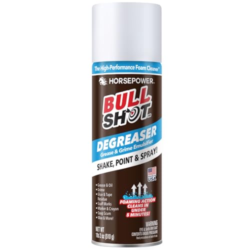 Bull Shot Degreaser, Foaming Degreaser & Grime Remover, Heavy-Duty, AS-SEEN-ON-TV, Residue-Free, Shake, Point & Spray, Emulsifies Grease, Oil Splatters, Glue, Tape Residue & More – Made in the USA