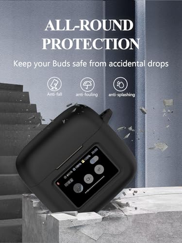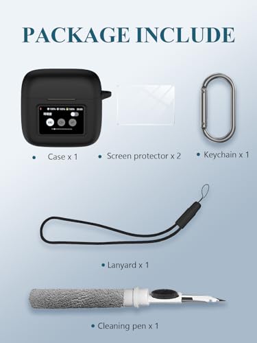 Case for JBL Tour Pro 3 – True Wireless Noise Cancelling Earbuds, Soft Silicone Protective Portable Scratch Shock Resistant with 2pack Screen Protector &Cleaner Kit & Carabiner & Lanyard,Black
