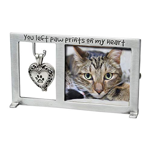- BEAUTIFULLY CRAFTED DESIGNS: Our small metal pet memorial frame is designed by artists and carefully crafted of metal with a pewter enamel finish and a brass vial for holding a small amount of ashes, fur, or another keepsake to keep your pet close