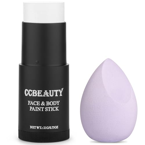CCbeauty Clown White Face Paint Stick,Face Painting Kit,Non Toxic SFX Makeup For Joker Skeleton Halloween Costume Cosplay,Professional Body Paint,Full Coverage Painting Foundation With Makeup Sponge