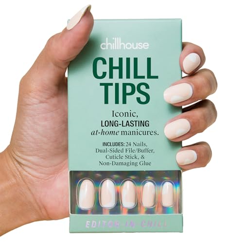 Chillhouse – Chill Tips, Press on Nails Kit – Editor in Chill (Oval) – 30 Nail Shapes & Sizes – Up to 3 Weeks of Wear – Customizable Fit – Reusable – Latina Founded & Women Owned – Beauty & Self Care