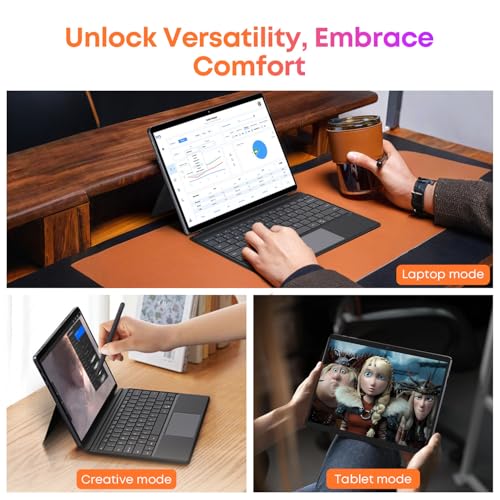 - 12GB LPDDR5 RAM + 512GB SSD: This 2 in 1 touchscreen tablet built-in LPDDR5 12GB memory, which provide you a faster speed without delay, and 512GB SSD Storage help you store important documents and HD movies, download music and play games easily.