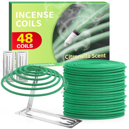 Citronella Coils, Citronella Incense Coil Outdoor, 48 PCS with 2 Coil Holders, Lemongrass Incense for Outside Backyard Camping BBQ Summer