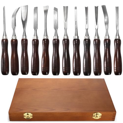 Covzoe 12 Pieces Wood Chisel Set, Woodworking Carving Tools with Wooden Box, CR-V Steel Edge Blade with Premium Wood Handle, Professional Wood Gouge Turning Tools for Craftsman Carpenter Beginners