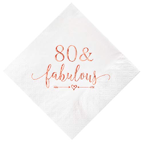 - SET INCLUDES: 50 highly absorbent 3-ply napkins made from paper featuring a Happy 80th Anniversary theme with “80 and fabulous” imprinted with Rose gold foil.