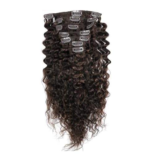 Deep Curly Deep Wave Brazilian Hair 100% Remy Human Hair Clip in Hair Extensions 20 Inches(50cm) 80g 7pcs/set Dark Brown