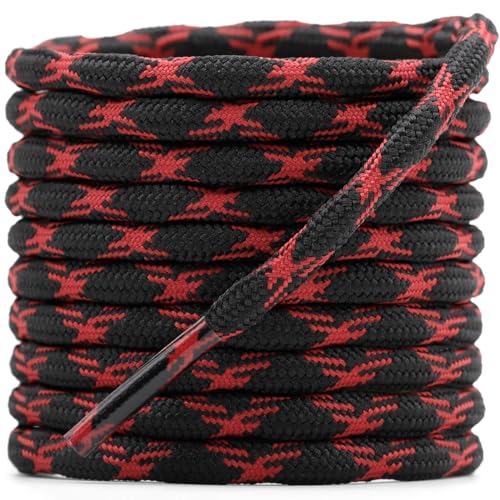 DELELE 2 Pair Round Wave Shape Non Slip Heavy Duty and Durable Outdoor Climbing Shoelaces Black&Red Hiking Shoe Laces Shoestrings-79 inch