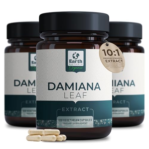 Earth BOTANIC Organic Damiana Leaf Extract 1000mg | 120 Damiana Capsules | Non-GMO, Gluten Free | Turnera Diffusa Organic Damiana Herb & Damiana Powder Supplement | Supports Women Wellness