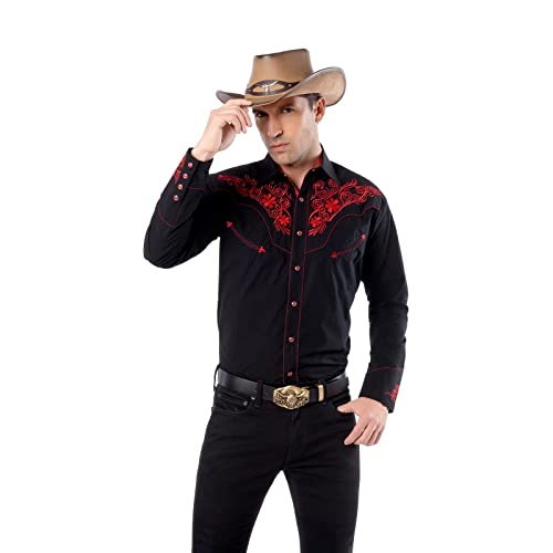EL PIONERO Men’s Western Shirt Long Sleeve Embroidered Cowboy Casual Snap Button Shirt Black