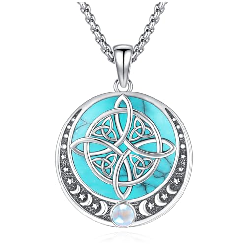 Eusense Nudo De Bruja Plata 925 Original Witches Knot Necklace for Women Men Sterling Silver Witch Knot Pendant Witchcraft Wicca Irish Jewelry Turquoise