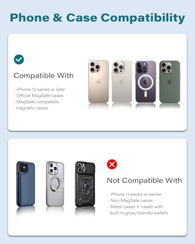 - Powerful Magnetic: Equipped with 2 ring magnet arrays with a total of 17 super strong N52 magnets, our cupholder car mount for magsafe provides strong magnetic suction to hold your phone firmly in any different road conditions, perfect for long and short road trip, also a good gift idea for families and friends, perfet for iphone 16 pro max accessories