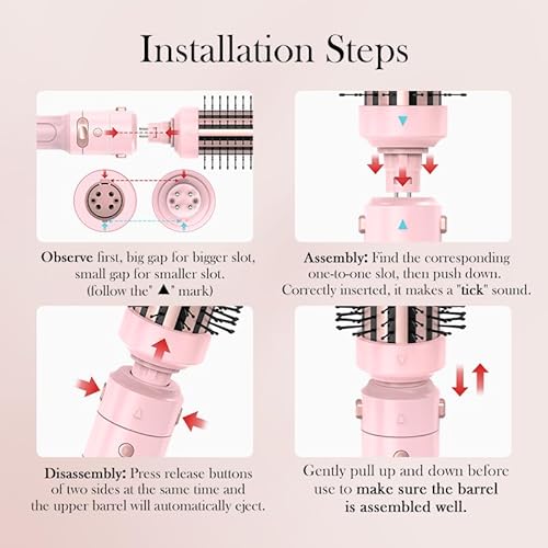 - 3 INTERCHANGEABLE BARRELS: Farery 3 IN 1 hair curler set includes three different sizes of interchangeable ceramic barrels: 1 inch, 1-1/4 inch barrel and 1-1/2 inch brush. The curling iron & curling brush makes different hairstyles, meets your most curling style needs