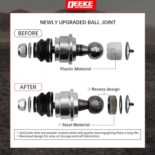- High Quality: Front upper control arms with ball joint assembly are made of high strength steel and sturdy mounting brackets for unmatched strength and durability . The ball joint rotates between the steering joint and the control arm to provide a safe and smooth ride.