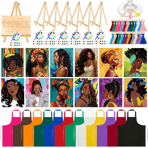 Fullhawl 12 Sets Sip and Paint Kit for Adults Pre Drawn Canvas Painting Set Date Night Paint and Sip for Couples Adults Party(Afro Girl)