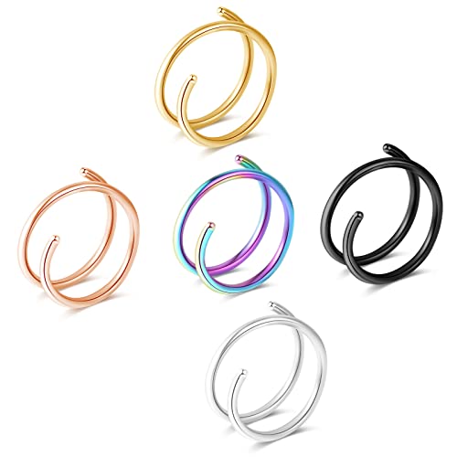 Fzroezz Double Hoop Nose Ring for Single Piercing, 5PCS Gold Black Silver Rainbow Rose Gold, 18 Gauge 8mm, Unisex, Modern Twist Spiral, Stainless Steel, Hypoallergenic
