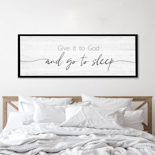 Give It to God and Go to Sleep Sign Framed Large 41”×15” Above Bed Wall Decor for Bedroom Farmhouse Wall Decor Guest Room Decor Rustic Master Bedroom Wall Decoration Wood Wall Art (black frame)