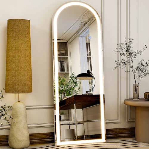 GLSLAND 20″x56″ Arched LED Full Length Mirror with Lights – Wall Mounted or Standing Full Body Mirror for Bedroom/Cloakroom – Dimmable with 3 Color Lighting Modes