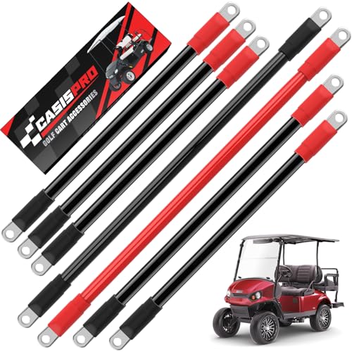 - [Package Included]: 1 pcs 26.8 IN black main EZGO TXT battery cables, 1 pcs 26.8 IN red main EZGO battery cables, 1 pcs 15 IN EZGO long jumper wire, 4 pcs 11.8 IN EZGO TXT jumpers. In total 7 pcs 4 gauge EZGO AC/DC wire