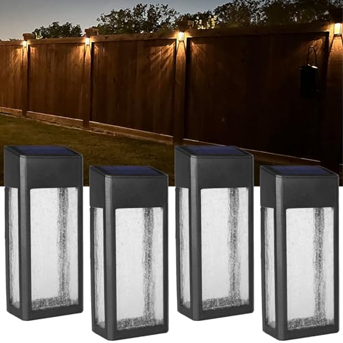 GOODFOEVER 4 Pack Solar Fence Lights Solar Post Accent Light/Wall Light for Outdoor, Yard, Fence, Porch and Garage, Body in Aluminum and Glass Waterproof