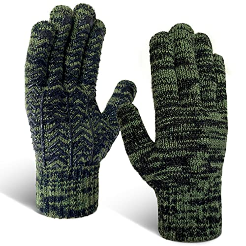 - Warmth: The winter men work gloves designed for the coldest temperatures, Stretched knit wool fabric with comfortable silicone print can keep hands warm, also wool fiber allows moisture wick performance, helps maintain warmth even in wet condition. Extended knit wrist on these gloves provides protection and more warm coverage