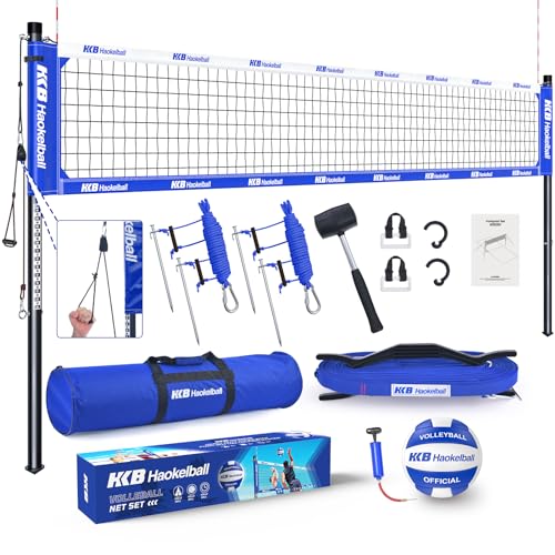 Haokelball Volleyball Net for Backyard Outdoor Portable Volleyball Net Set with Volleyball Antennas, Aluminum Poles, Tension Adjuster and Volleyball