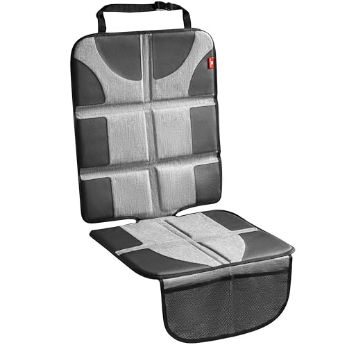 Helteko Car Seat Protector, Large Seat Cover for Child Carseat, Waterproof & Stain Resistant, Baby Mats Under Car Seats for Leather Seats, 2 Mesh Storage Pockets, 1Pack, Gray