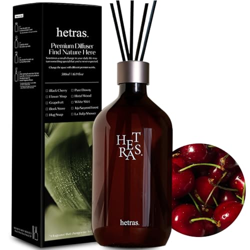 hetras Premium Reed Diffuser Set 16.9 fl.oz. 1 Pack | Black Cherry Scent | Long-Lasting Luxury Fragrance with 10 Reed Sticks for Home & Office | Gifts for Loved One