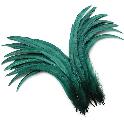 Holmgren Dark Green Rooster Feathers – 60pcs 12-14inch Natural Large Rooster Coque Tail Feathers Bulk foror DIY Crafts Hats Costume, Party Performances Decoration (Dark Green)