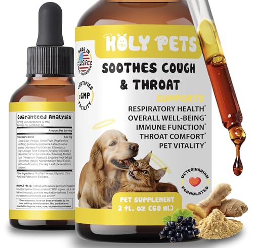 Holy Pets Cough Medicine for Dogs & Cats, Respiratory Infection Support – Sneezing Relief & Kennel Cough Treatment – Pet Asthma Support – Made with Natural Ingredients in The USA