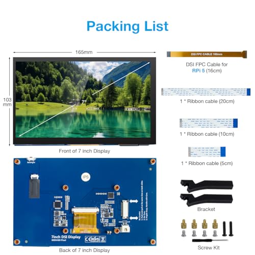 - 7 inches, 800×480 pixels, IPS type, wide viewing angle, capacitive touchscreen, enjoy smooth touch response and excellent clarity for all your Raspberry Pi projects.
